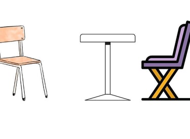 Das kleine Besteck auf 2x2: Für Dich stehen eine Bank, ein Tisch und zwei Stühle bereit.